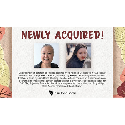 Also soon to be released this fall 2024.. is the wonderful picture book "Message in the Mooncake" by debut author Sapphire Chow (1954-2023), Xiaojie on illustrations, and published by Barefoot Books.