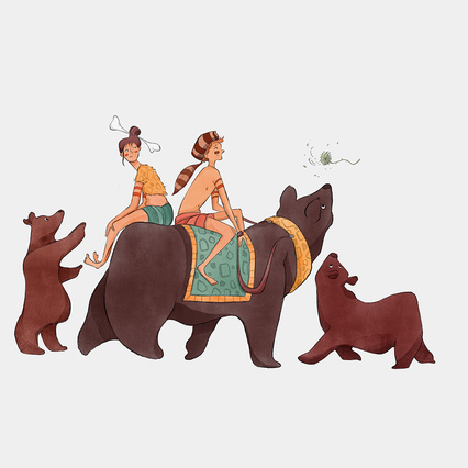 In terms of my recent personal work, I’ve been focusing more on children’s illustration and character design. My latest piece, still in progress, depicts a bear with a young girl on its back, holding her bow, ready to hunt. It’s an enormous bear, which contrasts strongly with the size of the character riding it.