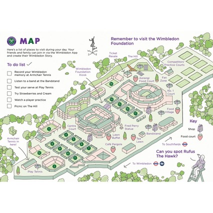 Wimbledon Activity Map - a map that makes exploring the grounds fun for families and visitors, highlighting bespoke activities and experiences.