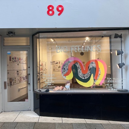 Through this experience, Caroline gained the space and clarity to fully immerse herself in her story, free from the usual studio distractions. Working at scale allowed her to see the narrative from a fresh perspective, cut back repetition, and shape the book with more intention. Early feedback from visitors was validating and opened up new creative directions. Displaying her pages on the walls helped her see the project as a whole, reducing overwhelm and giving her greater control. Sharing the process online brought new followers and potential future opportunities.The experiment also sparked ideas for larger, more three-dimensional work, energising the project in ways she couldn’t achieve in her studio, while bringing colour and joy to the high street and inspiring other artists to explore the space in similar ways.