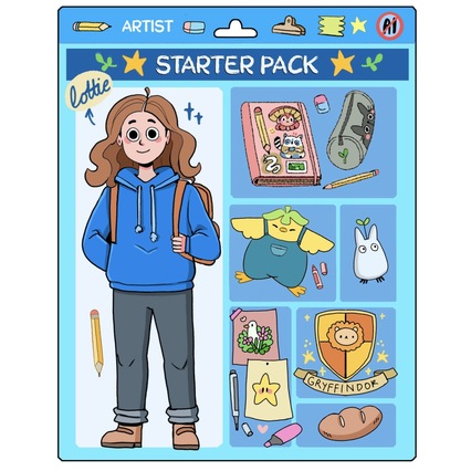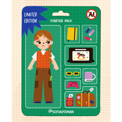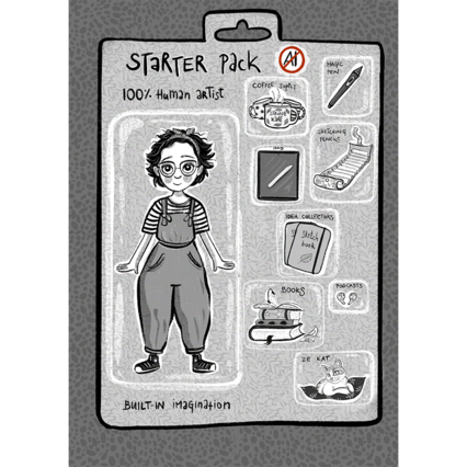 It's been hard to escape the flood of AI-gen starter pack dolls taking over social media platforms and timelines this month, but we've loved to see the artist push back, proud and loud, under the #starterpacknoAI trend.