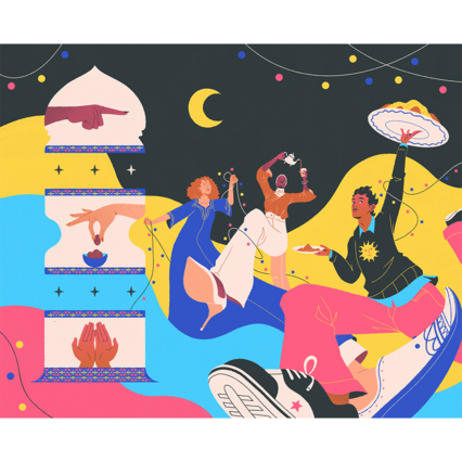 Driss Chaoui, aka Kalakal, is a Toulouse-based illustrator and self-proclaimed colour enthusiast whose work is as vibrant as his inspirations. He was long-listed for the 2024 World Illustration Awards and a selected winner of the 2024 American Illustration Awards. Coming from a richly diverse background and living at the intersection of the queer and the muslim world, Driss has a passion for cultural exploration and loves to add fun, glamour, and a touch of camp to his work.