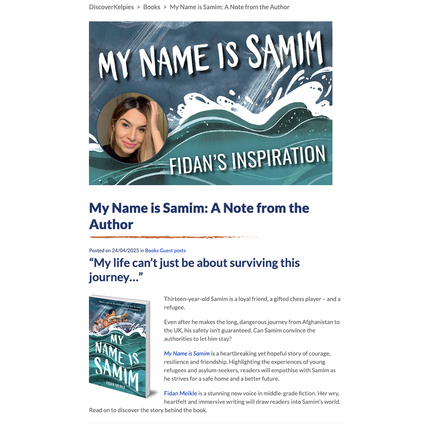 We’re very pleased to share this impressive debut novel written by Fidan Meikle, My Name is Samin. The cover is illustrated by Zeynep Ozatalay, and published by Floris Books in their Kelpies range. It’s suitable for the upper middle grade audience of about 11 or 12 upwards.