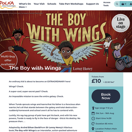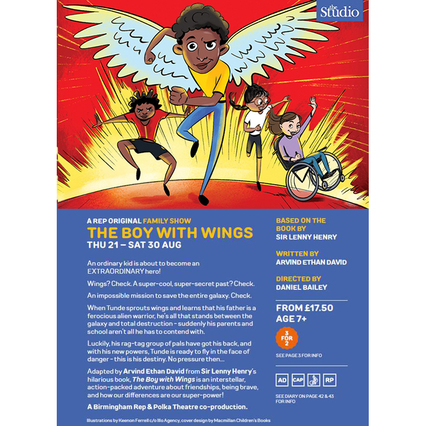 From page to stage; The Boy With Wings is heading to both the Wimbledon Polka Theatre and the Birmingham Repertory Theatre in 2025.