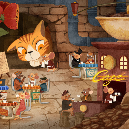 Vivid colour palettes and detailed character and layout design are the noticeable features of my style.
