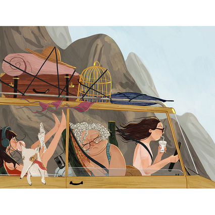 Though it may sound cliché, I’m most inspired when I travel. I love sketching houses, landscapes, or interesting people I come across on the road. After each trip, I create an illustration that’s like a tribute to my journey—a mix of everything funny or captivating that caught my eye. I also love watching old cartoons or timeless animations for inspiration, especially for the details and discovering new ways to translate a world’s image into my own work.