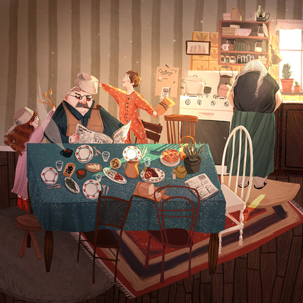 She starts with pencil and marker sketches and finishes them digitally. She especially loves illustrating grandmas in their lively homes, filled with history and warmth. Her dream project? Illustrating a classic children’s book that brings out that same sense of wonder she felt as a child.