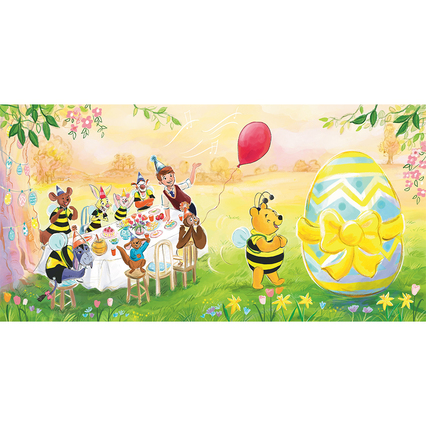 I wanted my Illustrations to have a nod to E. H. Shepard's expressive lines and leave areas that are undefined to leave room for the mind to linger and make up. I tried to balance subtly with bold block colour, so the characters are defined and expressive and true to the way they are depicted in the films. I poured over the original map created by E. H. Shepard and tried to be true geographically to the original in my Illustration, for example if you take a look at the last party scene from Pooh’s Garden in the background we can see Roo and Kangas house above, the picnic area further back and to the right and then further right we can see the Bee Tree.