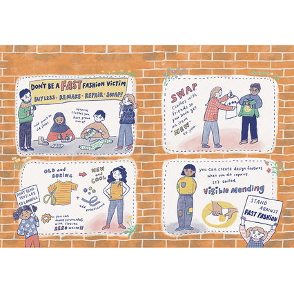 Illustrating non-fiction title "Stitching Freedom" by Common Threads Press". Illustrating radical history through embroidery was a meaningful experience. I had the chance to draw suffragettes and felt proud to see the books sold at the Barbican and Tate shops.