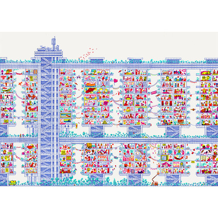 The second is self-directed. Lockdown was a unique time when many people were in the same situation. Tragically for some, that meant the heightened threat of domestic violence. In an effort to shine a light on this, I did a project raising money for Refuge - a specialist charity for women and children experiencing DV. Life Indoors asked my digital community to send a picture of themselves in within their home. Each photo was then illustrated into a large drawing of an imaginary apartment bloc. The implied rhetoric; that we’re all neighbours, all looking out for one another. I drew 70+ participants into the artwork. I then sold prints of the drawing, with all profits going the charity. We raised £7K+.