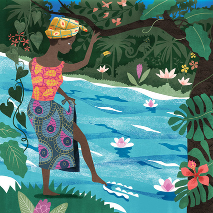 My style is bright and colourful, whimsical and graphic. There’s a lot of pattern juxtaposed with flat cutout shapes. I love line, I use it very sparingly to describe and add energy.