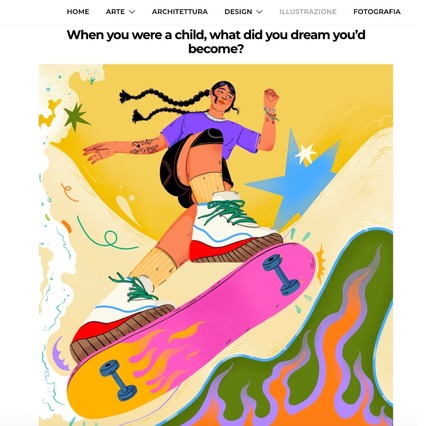 We recently teamed up with Artwort, an independent Italian magazine dedicated to illustration, art, and photography, for a special feature in their Disegnini column. The series takes the form of a playful “interview,” where illustrators respond to five short questions, not with words, but with five original illustrations. A great format for illustrators that allows them to shine through the use of shapes, colours and their imagination.