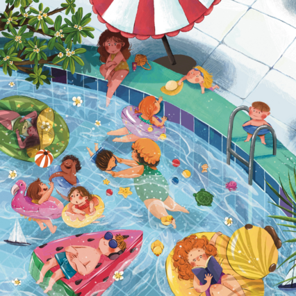 Introducing Vy Tran, an illustrator based in Ho Chi Minh City, Vietnam. Inspired from a young age by Japanese manga, Vy filled her home with paintings and comic sketches. As Vy pursued her dream of becoming a professional illustrator, she found a true passion for children’s picture books. She loves drawing expressive children, natural scenes full of flowers and trees, and cozy homes filled with tiny details, like a hidden cat or a bee landing on on a flower. Vy mainly works digitally, sometimes using watercolor.